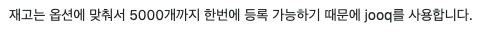 하지만 jooq의 values()를 사용하게 되면 한번에 bulk insert (하나의 쿼리!) 가 나가게 되므로 jpa보다는 좋다.