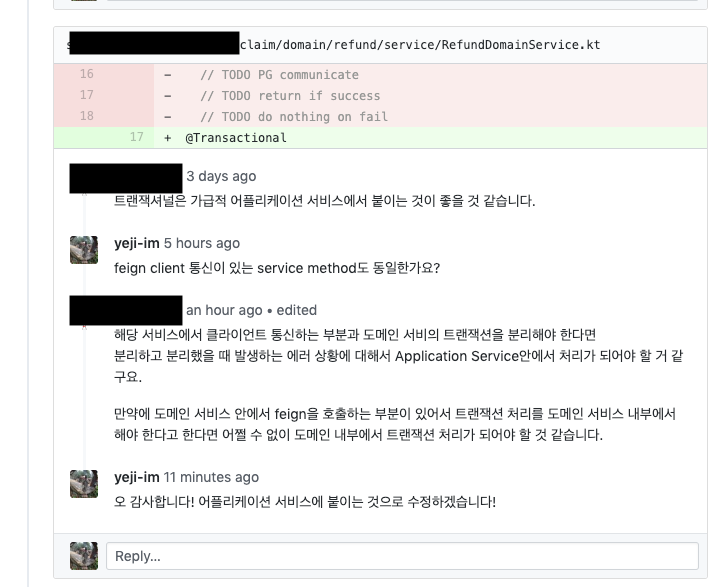 해당 domain function을 호출하는 곳에서 (Application layer) Transaction을 관리하는 것이 좀 더 용이하다.